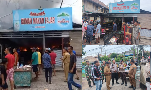 Halokantinews.com.OKI – Diduga akibat bocornya tabung gas diruang dapur memasak, Rumah Makan Fajar yang terletak di LK 3 RT 6 Kelurahan Cintaraja Kecamatan Kayuagung yang biasa menyiapkan makanan serba Rp.13.000 milik Agus (50) ludes terbakar, Selasa (25/11/2025).