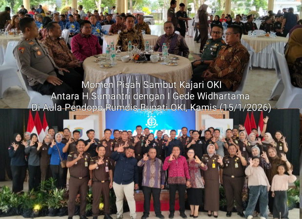 Halokantinews.com.OKI – Bertempat di Aula Pendopo Rumah Dinas Bupati OKI. Pemerintah Kabupaten OKI melakukan giat pisah sambut Kajari OKI antara H. Sumantri dengan I Gede Widhartama.