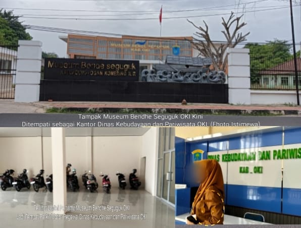 Halokantinews.com.OKI – Bangunan Museum Bendhe Seguguk OKI yang dikerjakan dua tahap yakni tahap pertama ditahun 2023 dengan anggaran lebih kurang Rp.2 Milyar yang berasal dari dana APBD OKI tahun 2023 dan ditahap kedua ditahun 2024 dengan dana lebih kurang Rp.2.940.000 yang bersumber dari dana Bantuan Gubernur Sumsel tahun anggaran 2024 lalu. Setelah lebih kurang satu tahun belum difungsikan dan ditempati, akhirnya bangunan museum dua lantai tersebut kini ditempati sebagai Kantor Dinas Kebudayaan dan Pariwisata OKI.