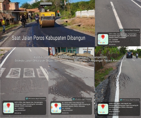 Halokantinews.com.OKI – Proyek Peningkatan Jalan Poros Kabupaten di Kecamatan Pampangan Kabupaten OKI pada tahun 2025 lalu telah selesai dikerjakan oleh pelaksana kegiatan. Namun kondisi jalan yang diaspal dimana awalnya terlihat bagus, licin dan disanjung-sanjung oleh masyarakat OKI khususnya masyarakat di Wilayah Kecamatan Pampangan dan sekitarnya, bahkan oleh Gubernur Sumsel dan Bupati OKI tersebut kini kembali mengalami kerusakan.