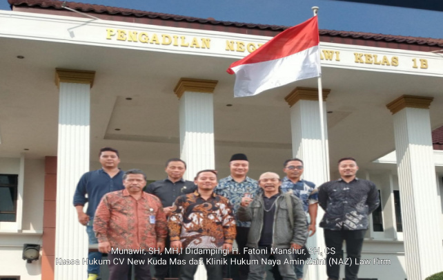 Hal itu ditegaskan Munawir, SH, MH,l didampingi H. Fatoni Manshur, SH., kuasa hukum CV New Kuda Mas dari Klinik Hukum Naya Amin Zaini (NAZ) Law Firm, usai proses mediasi.