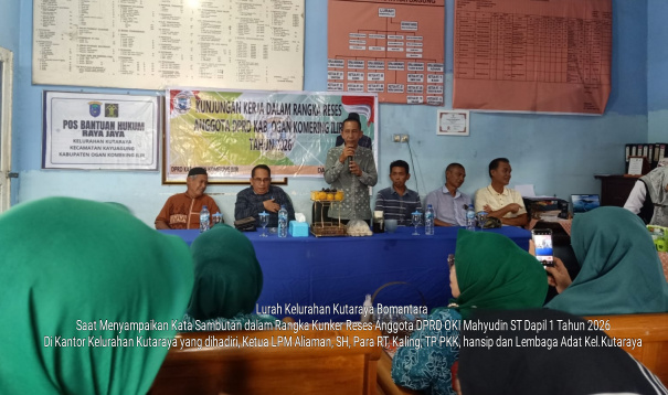 Sementara itu Lurah Kelurahan Kutaraya, Bomantara dalam sambutannya mengucapkan terimakasih atas kedatangan anggota DPRD OK, Mahyudin ST yang melakukan reses untuk kedua kalinya di Kelurahan Kutaraya. Ia berharap apa yang diusulkan maupun yang dikeluhkan masyarakat Kelurahan Kutaraya kiranya dapat diperjuangkan dan direalisasikan melalui anggota DPRD OKI bapak Mahyudin, harapnya.