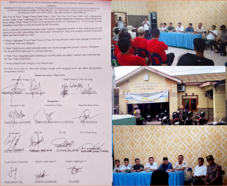 Halokantinews.com.Binjai.Sumut – Mediasi Konflik Klenteng Thai Seng Hut Co di Binjai Barat bersama Warga lingkungan 3 yang digelar pada Rabu (4/3/26) yang dihadiri langsung oleh Ketua Pengurus Klenteng Elton Hotman bersama rekannya dan kubu warga yang berseteru di Kantor Kelurahan Bandar Sinembah, Kec. Binjai Barat, Kota Binjai Sumatera Utara mencapai kesepakatan.
