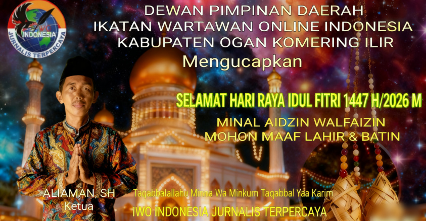 Halokantinews.com.OKI – Menyambut Kemenangan Puasa Ramadhan 1447 Hijriyah sebulan penuh Tahun 2026 Masehi Ketua DPD IWO INDONESIA OKI Mengucapkan Selamat Hari Raya Idhul Fitri 1447 Hijriyah