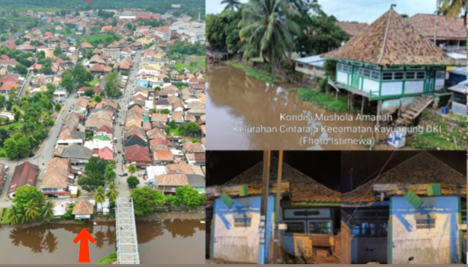 Sungguh Miris “Mushola Amanah” yang berada di tengah Ibukota Kabupaten OKI, tepatnya di pinggir Sungai Komering Kayuagung di Samping Jembatan Kayuagung OKI yang tidak jauh dari Rumah Dinas Bupati OKI yang berada di wilayah Kelurahan Cintaraja Kecamatan Kayuagung Kondisinya sudah sangat memprihatikan bahkan sudah terbengkalai tidak ada yang mengurusnya diduga sejak kurang lebih 10 tahun.